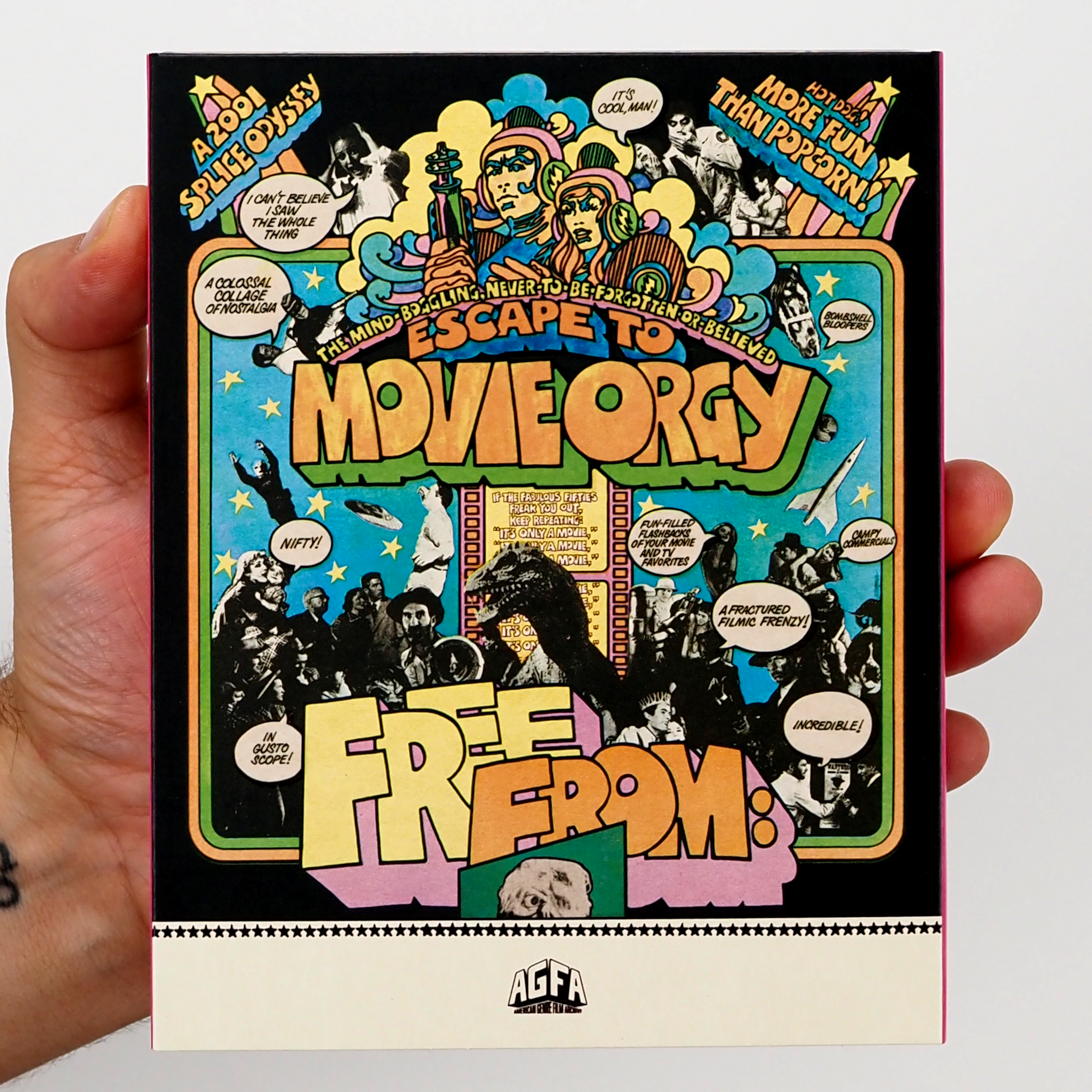 THE MOVIE ORGY is a legendary found footage triumph from Joe Dante—one of genre cinema's most significant masterminds. In 1968, the future director of GREMLINS took an apartment’s worth of 16mm prints and, with the help of producer Jon Davison (ROBOCOP), meticulously created what is quite possibly the world's first found footage megamix. Comprised of commercials, news reels, feature film clips, TV bloopers, and much more, THE MOVIE ORGY is an essential cultural artifact and a psychedelic vortex of mashed-up magnificence. Never available on home video, the film has been preserved from the original 16mm elements by AGFA in partnership with Joe Dante and Jon Davison.