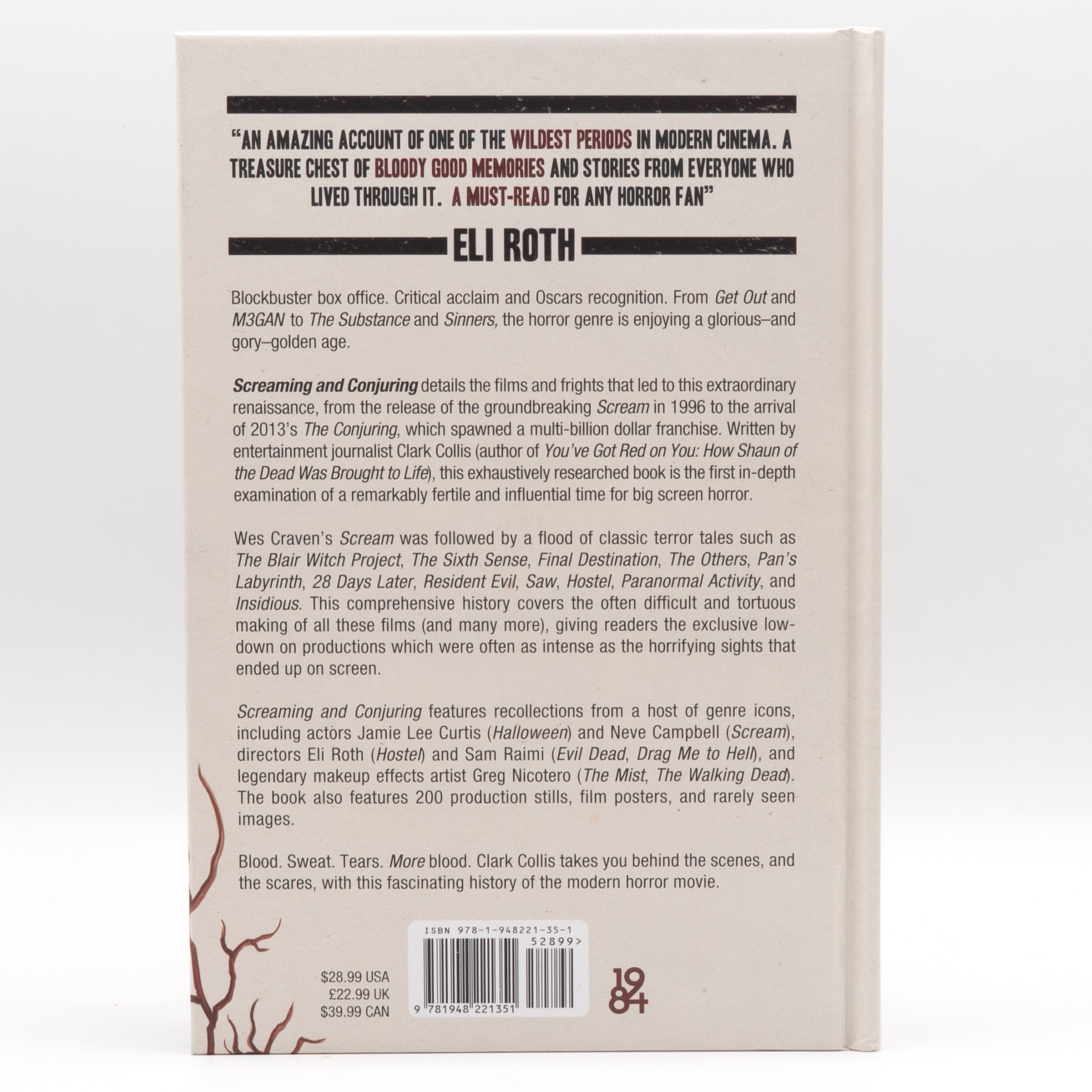 Screaming and Conjuring features recollections from a host of genre icons, including actors Jamie Lee Curtis and Neve Campbell, directors Eli Roth and Sam Raimi, and legendary makeup effects artist Greg Nicotero. The book also includes 200 production stills, film posters, and rarely seen images.
