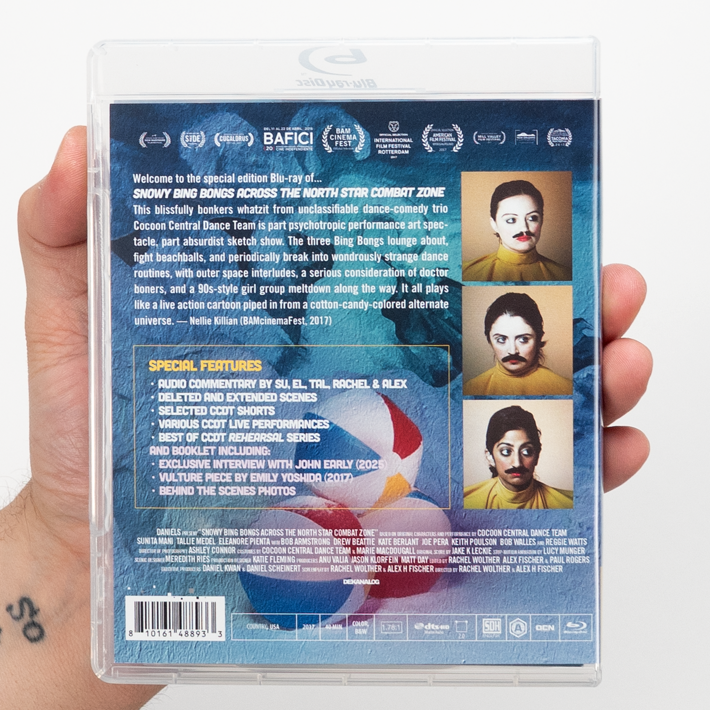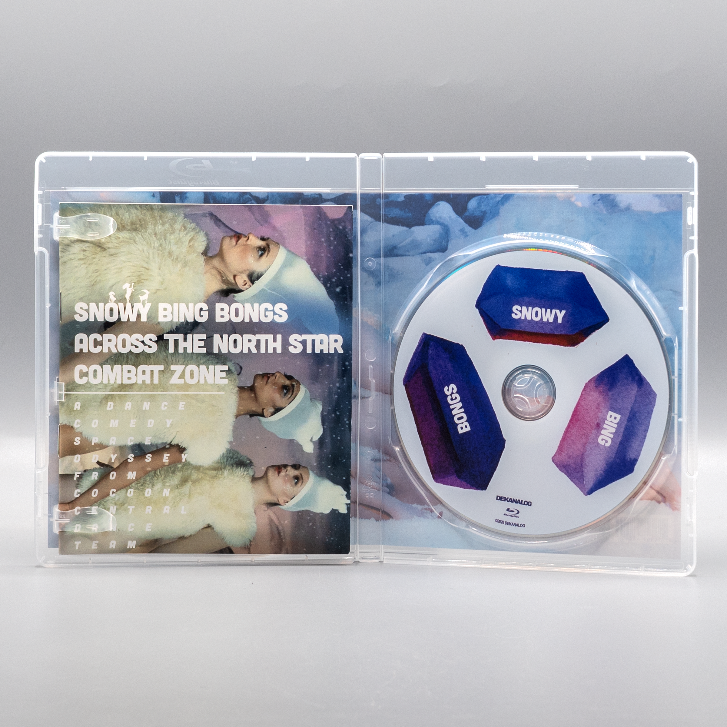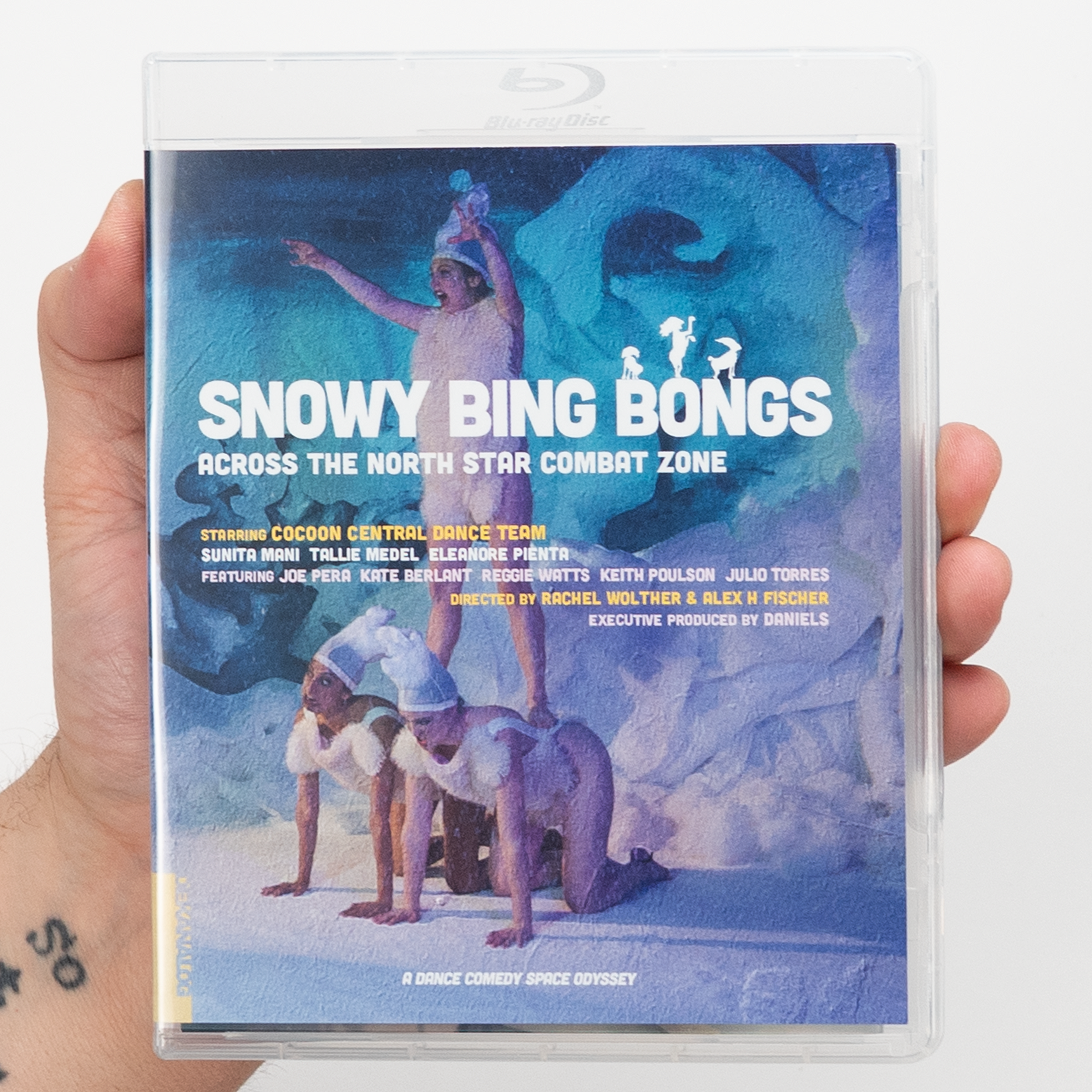 Welcome to the special edition Blu-ray of... SNOWY BING BONGS ACROSS THE NORTH STAR COMBAT ZONE. This blissfully bonkers whatzit from unclassifiable dance-comedy trio Cocoon Central Dance Team - Sunita Mani (GLOW, MR. ROBOT), Tallie Medel (EVERYTHING EVERYWHERE ALL AT ONCE), and Eleanore Pienta (A DIFFERENT MAN) - is part psychotropic performance art spectacle, part absurdist sketch show. The three Bing Bongs lounge about, fight beachballs, and periodically break into wondrously strange dance routines, with outer space interludes, a serious consideration of doctor boners, and a 90s-style girl group meltdown along the way. It all plays like a live action cartoon piped in from a cotton-candy-colored alternate universe. Produced by the Academy Award-winning Daniels (EVERYTHING EVERYWHERE ALL AT ONCE). Featuring Kate Berlant (WOULD IT KILL YOU TO LAUGH?), Joe Pera (JOE PERA TALKS WITH YOU), Keith Poulson (I BLAME SOCIETY), and Reggie Watts (COMEDY BANG BANG). Written and Directed by Rachel Wolther (THE FRENCH ITALIAN), and Alex H Fischer (SAVE YOURSELVES!).