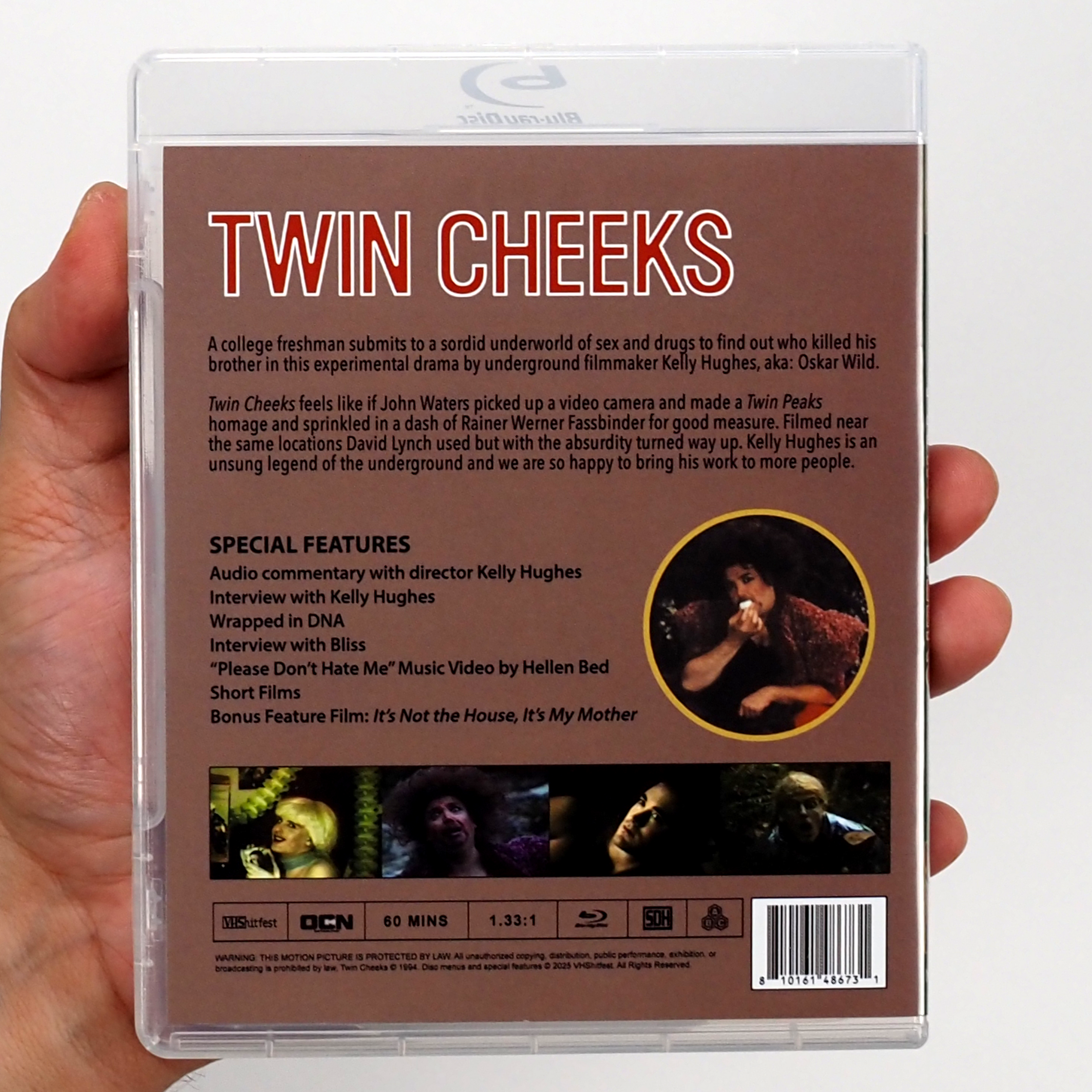 Twin Cheeks feels like if John Waters picked up a video camera and made a Twin Peaks homage and sprinkled in a dash of Rainer Werner Fassbinder for good measure. Filmed in a lot of the same locations David Lynch used but with the absurdity turned way up. Kelly Hughes is an unsung legend of the underground and we are so happy to bring his work to more people.