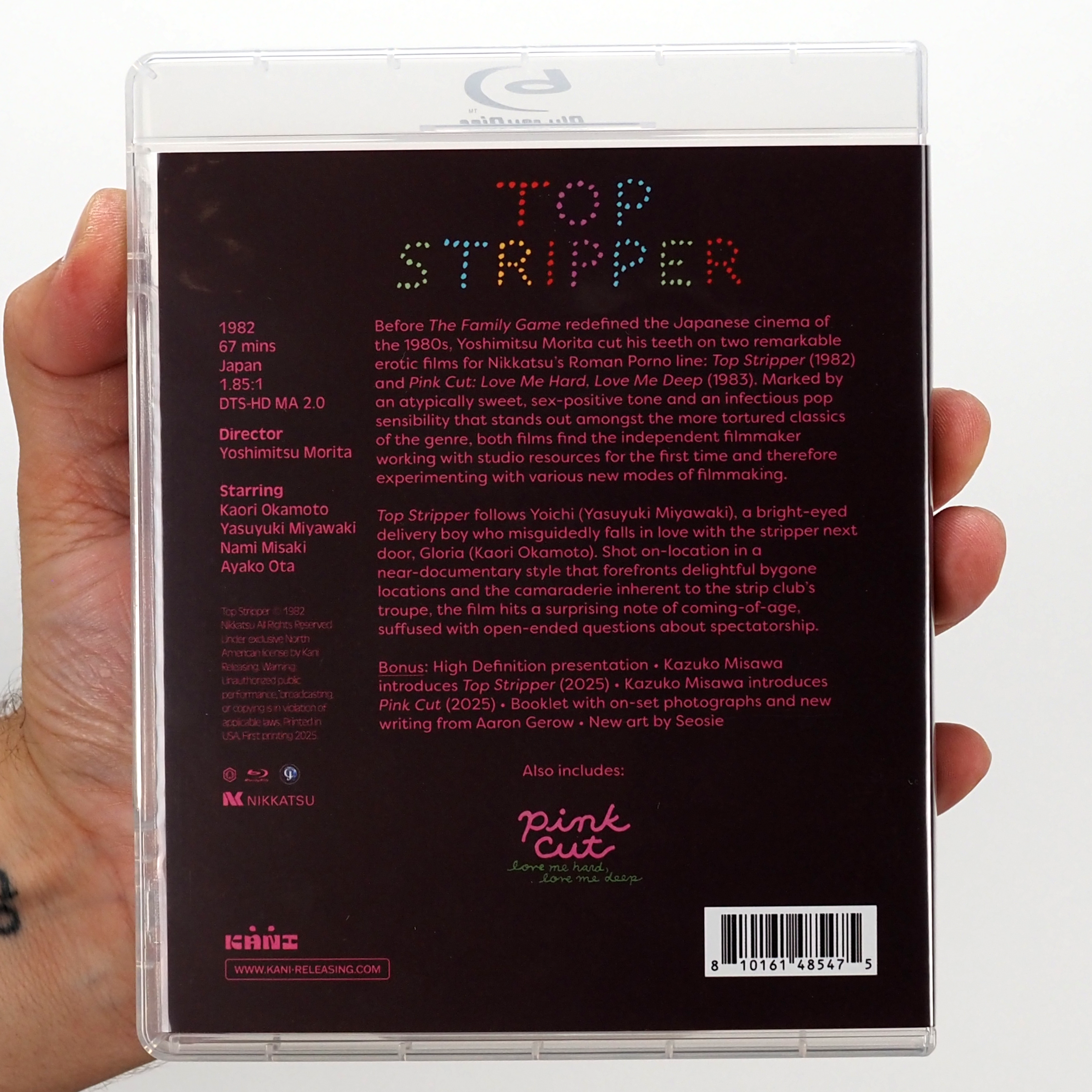 Before The Family Game redefined the Japanese cinema of the 1980s, Yoshimitsu Morita cut his teeth on two remarkable erotic films for Nikkatsu’s Roman Porno line: Top Stripper (1982) and Pink Cut: Love Me Hard, Love Me Deep (1983). Marked by an atypically sweet, sex-positive tone and an infectious pop sensibility that stands out amongst the more tortured classics of the genre, both films find the independent filmmaker working with studio resources for the first time and therefore experimenting with various new modes of filmmaking.