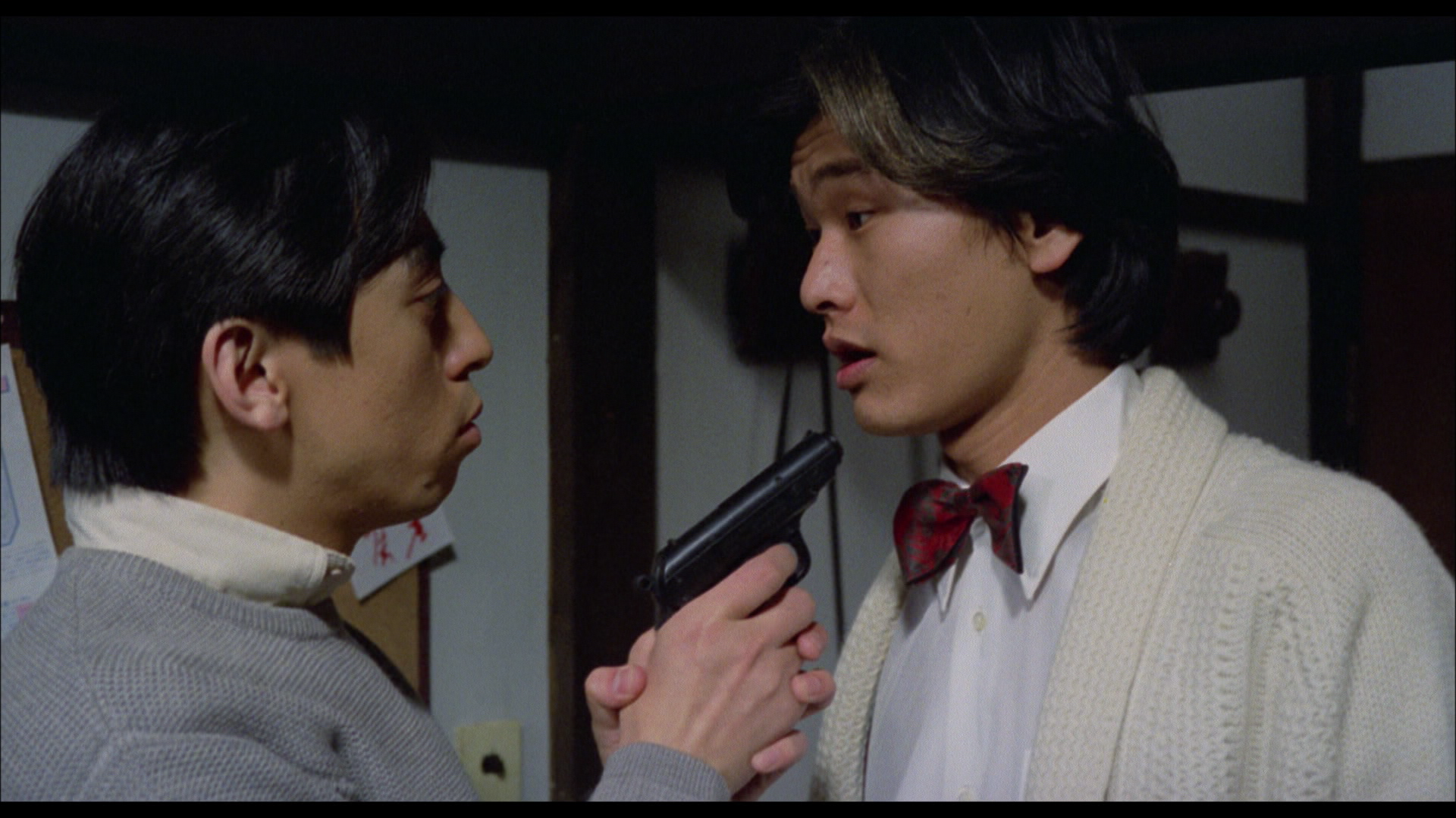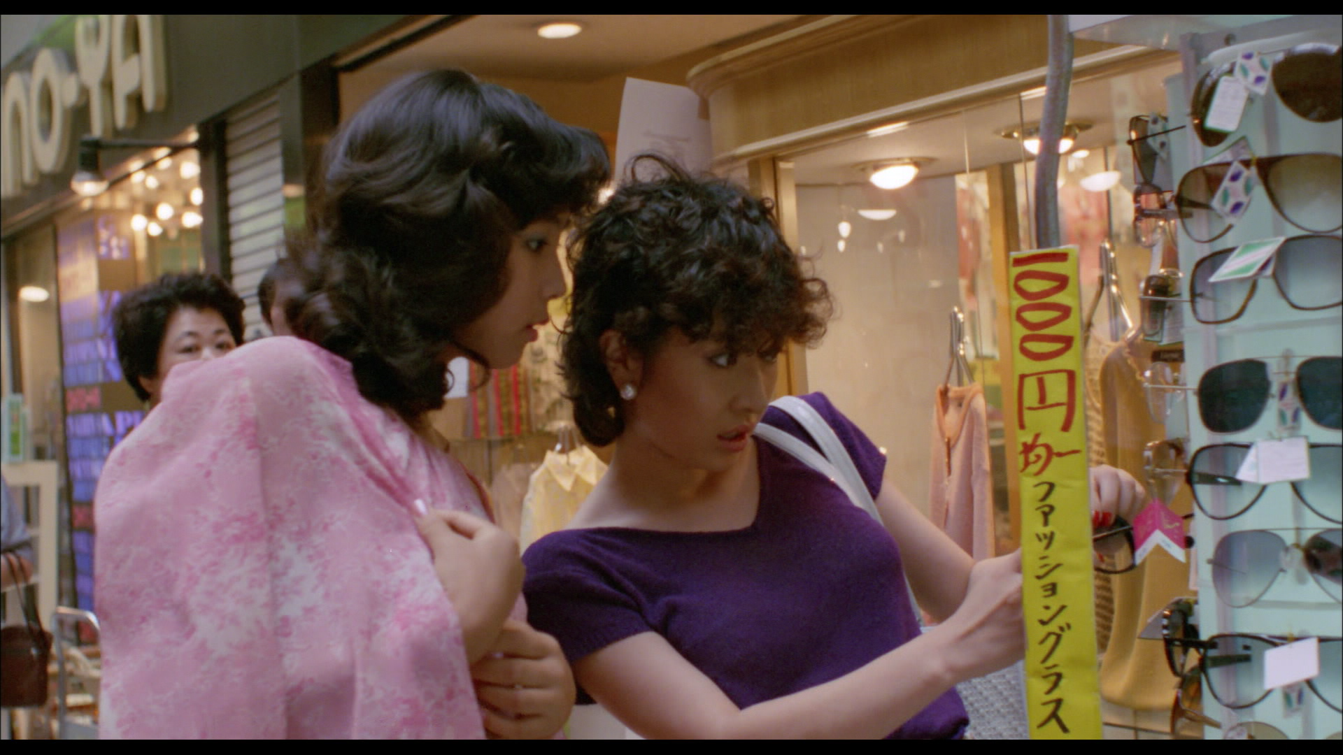Top Stripper follows Yoichi (Kensuke Miyawaki), a bright-eyed delivery boy who misguidedly falls in love with the stripper next door, Gloria (Kaori Okamoto). Shot on-location in a near-documentary style that forefronts delightful bygone locations and the camaraderie inherent to the strip club’s troupe, the film hits a surprising note of coming-of-age, suffused with open-ended questions about spectatorship that prove critical of the medium itself. Its pop-inflected counterpart, Pink Cut: Love Me Hard, Love Me Deep, sees Morita working on a set for the first time, basking in the artificiality of it all. Morita goes as far as staging musical numbers, in a fantasmatic tale of entrepreneurship that finds Mami (Mayumi Terashima) and Yuka (Mai Inoue) open a barbershop best known for its… special services. A pure candy-colored concoction emblematic of the 1980s, it reveals Morita as a thoroughly versatile filmmaker that here takes his first steps towards the striking, playful postmodernism that would define his entire oeuvre.