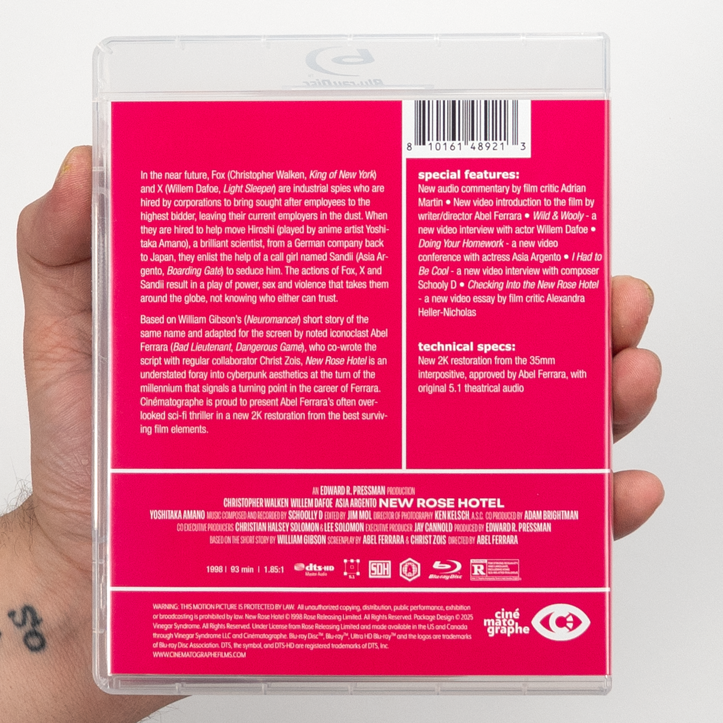 Based on William Gibson’s short story of the same name and adapted for the screen by noted iconoclast Abel Ferrara (Bad Lieutenant, Dangerous Game), who co-wrote the script with regular collaborator Christ Zois, New Rose Hotel is an understated foray into cyberpunk aesthetics at the turn of the millennium that signals a turning point in the career of Ferrara. Cinématographe is proud to present Abel Ferrara’s often overlooked sci-fi thriller in a new 2K restoration from the best surviving film elements.
