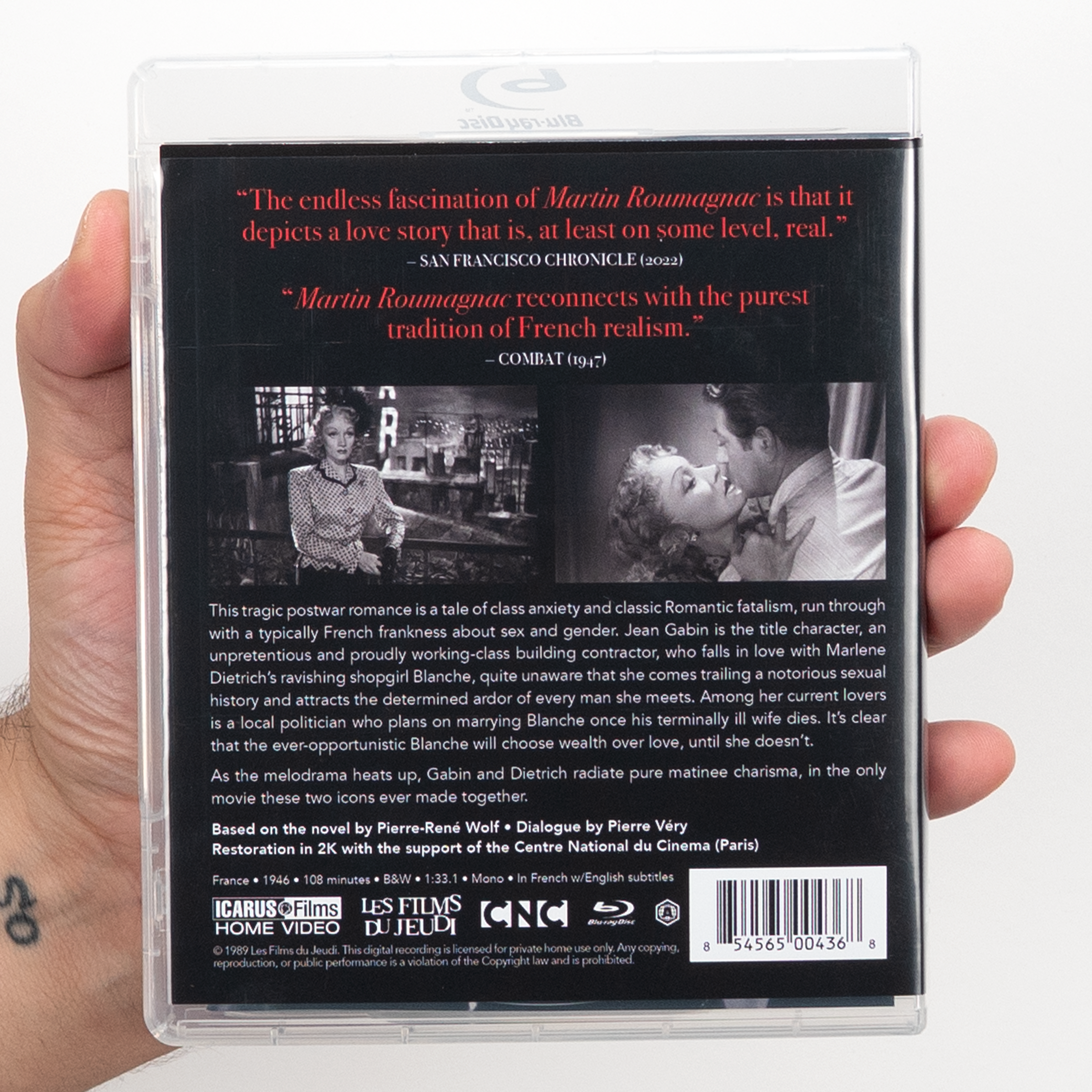This tragic postwar romance is a tale of class anxiety and classic Romantic fatalism, run through with a typically French frankness about sex and gender. Jean Gabin is the titular character, an unpretentious and proudly working class building contractor, who falls in love with Marlene Dietrich’s ravishing shopgirl Blanche, quite unaware that she comes trailing a notorious sexual history and attracts the determined ardor of every man she meets. Among her current lovers (the American title was The Room Upstairs) is a local politician who plans on marrying Blanche once his terminally ill wife dies, but Gabin’s sensible lug doesn’t care, though it’s clear that the ever-opportunistic Blanche will choose wealth over love.