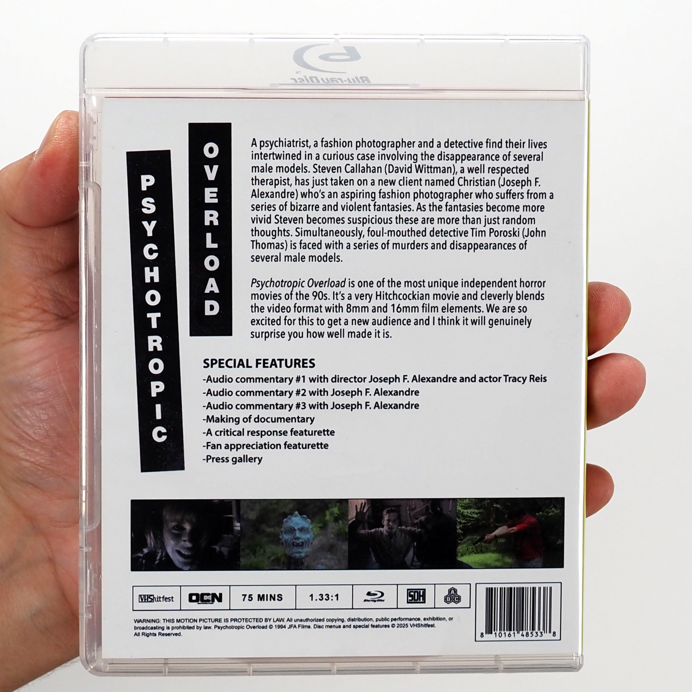 Psychotropic Overload is one of the most unique independent horror movies of the 90s. It’s a very Hitchcockian movie and cleverly blends the video format with 8mm and 16mm films elements. We are so excited for this to get a new audience and I think it will genuinely surprise you how well made it is.
